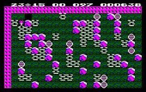 Une fois que vous possédez assez de diamants, le niveau scintille pendant deux secondes, cela veut dire que la sortie vient d’apparaître et revoici un autre problème, trouver la sorti au milieu du dédale de cailloux ( toujours ! ) et de votre chemin déjà frayer car au fur et à mesure des levels, les cailloux sont dispatchés partout, les monstres font leurs apparitions et même qu’il va falloir en buter pour faire apparaître les fameux diamants, bref que du bonheur !