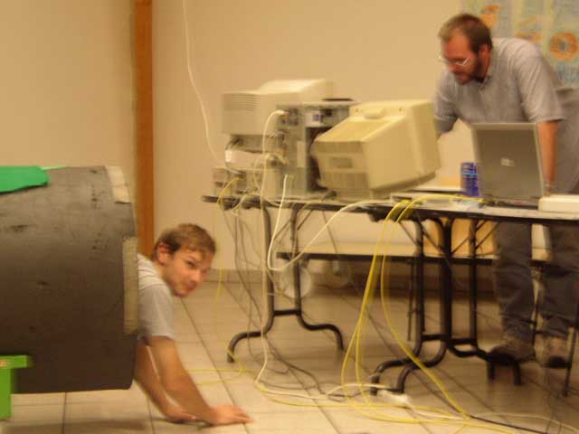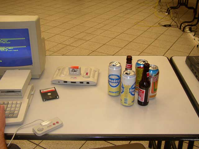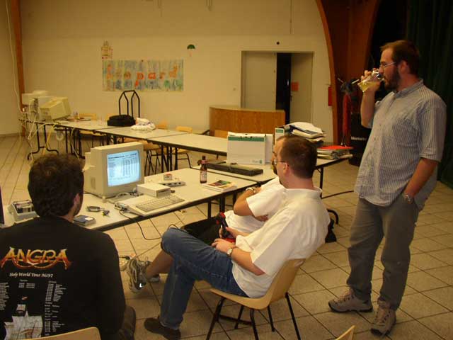 Tout commenca donc vendredi avec l’arrivée de Paco, Mathieu son frére et Akira76 puis de Cricri_ng, avec deux heures de retard et celle de Pops, un Amigaiste venu à notre meeting pour faire de la pub pour le sien, à savoir l’IDGRP IV qui aura lieu à Villers les Nancy en mai 2004 . Aprés la dégustation de quelques BigMacks et frites réchauffées aux micro-ondes, Pops nous quitta tout en nous promettant de revenir le lendemain. Olivier Fontes profita de son temps libre pour venir nous filer un coup de main pour le serveur puis repartit, prét à revenir le lendemain.
