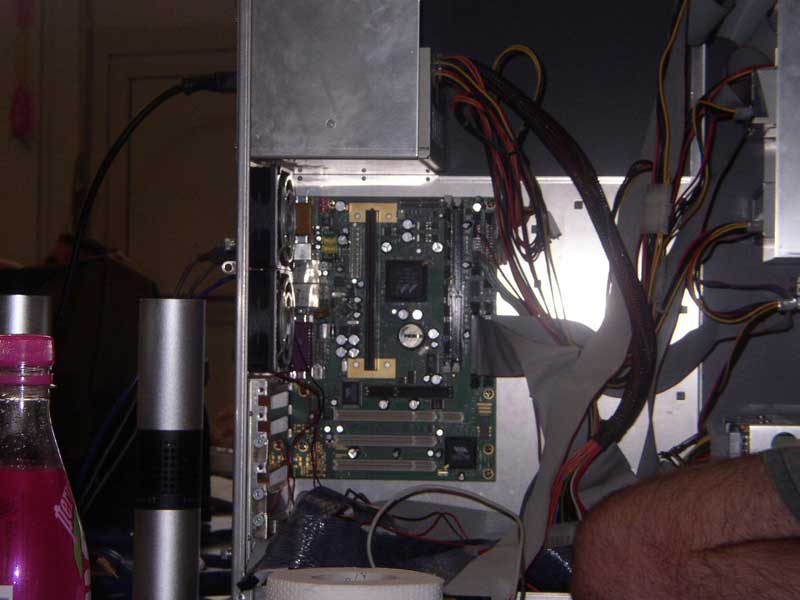 Nous avons été relativement impressionnés par la présence de nombreux softs (même s’il subsiste quelques défauts, mais cela est courant dans tout projet) : l’IRC, la musique, le DVD, l’internet… tout est possible. Falcon en profita pour faire tourner DukeNukem, QuakeII, Wipeout sans aucun problème. Le rêve quoi. Ce a quoi Cricri_ng répondit « Ca existe en version portable ? ». Malheureusement Falcon nous confirma qu’en l’état actuel ce n’était pas le cas mais qu’on pouvait envisager du PDA dans l’avenir.