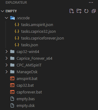 (à la création du dossier, le fichier « empty.dsk » n’existe pas encore, n’y prêtez pas attention)