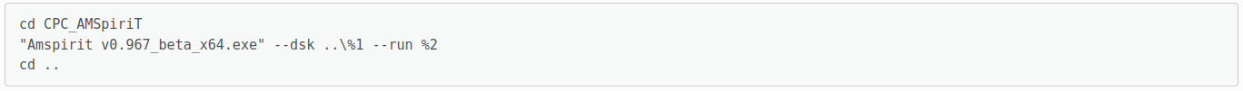 La seconde partie concerne l’émulateur. Elle se contente de lancer le fichier « cap32.bat » avec deux arguments :
