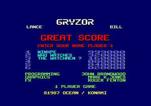 Dans Gryzor le personnage répond parfaitement aux commandes : il court, saute et tirs dans tous les sens. Chaque niveau est une succession de tableaux, ici pas de scrolling continu mais l’enchaînement, relativement bien fait, de ceux si sont tellement rapide qu’ils ne nuisent en rien au rythme du jeu.
