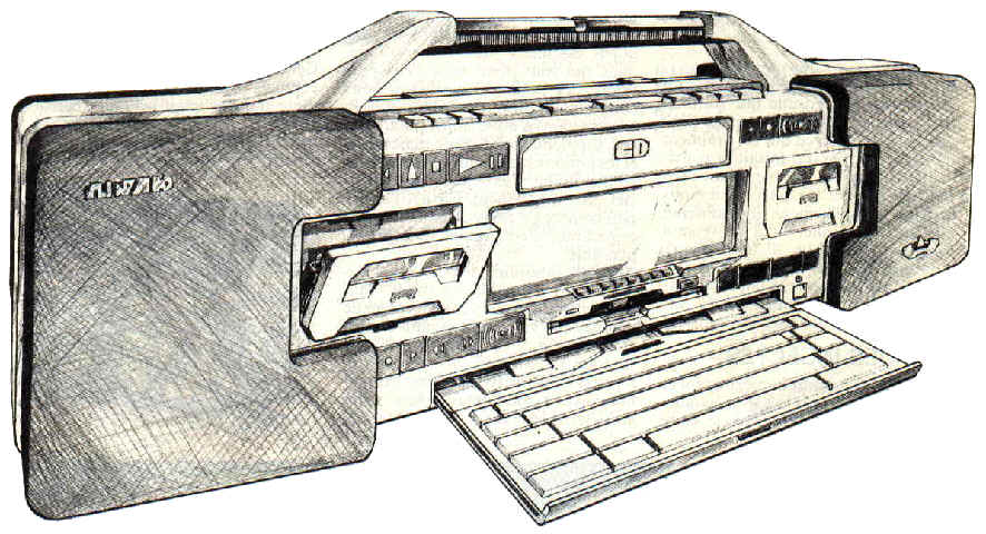 C’est la réplique exacte d’un gros radio-cassettes du plus pur style japonais. Machine absolument étonnante qui intègre, là encore, un écran LCD couleur. On y trouverait également un clavier de CPC sans pavé numérique qui se range sous la machine et un lecteur de disquettes en façade. Élément alléchant, un lecteur de CD prendrait place au-dessus de l’écran LCD, permettant d’écouter des lasers classiques, mais aussi d’utiliser des jeux sur ce support. Sinon, l’engin offrirait les fonctionnalités ordinaire d’un ensemble hi-fi transportable.
