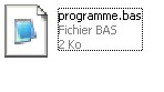 Un fois votre listing tapé à la main ou « océrisé », vous devez enregistrer le fichier (que j’ai appelé ici « programme ») au format .txt (avec notpad par ex) et ensuite changé l’extension en .bas.