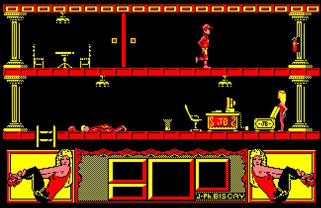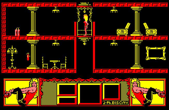 Finalement, vous arrivez au dernière étage et vous trouvez votre homme. Le jeu se termine par une scène de déshabillage torride qui m’a fait rêver quand j’étais adolescent. Pourtant, cela n’a rien de graphiquement exceptionnel comme séquence.