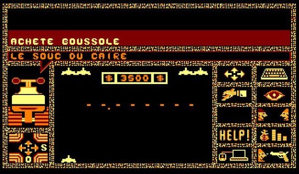 – L’icône « achat » affiche l’ordre d’acheter un objet. Taper ensuite au clavier le nom de l’objet voulu.