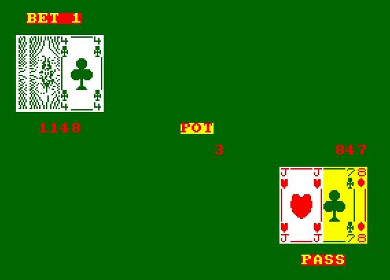 Le jeu commence : les cartes sont distribuées, lentement et de façon saccadée. Deux cachées à l’adversaire, une troisième visible par les deux joueurs. Commence alors les enchères : soit vous suivez, soit vous pariez, soit vous demandez une carte. Plus les enchères montent, plus le jeu est censé devenir intéressant hum…